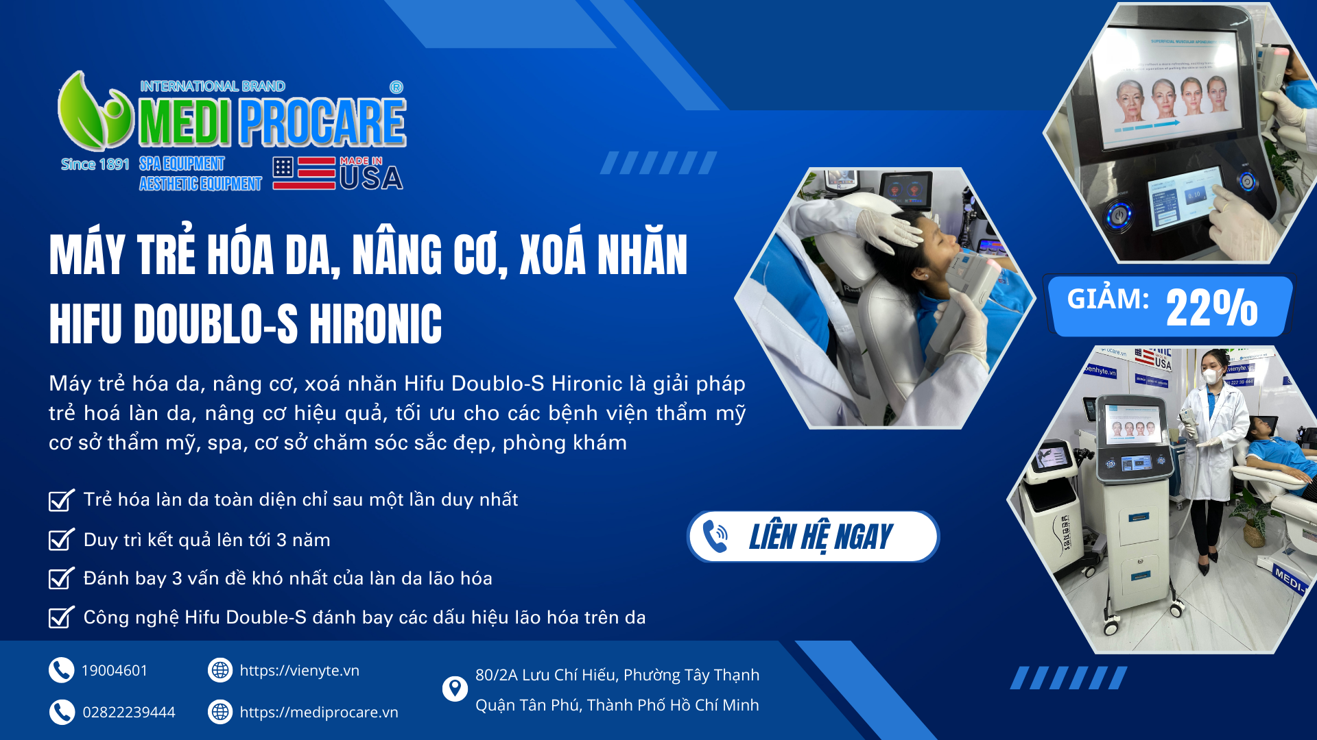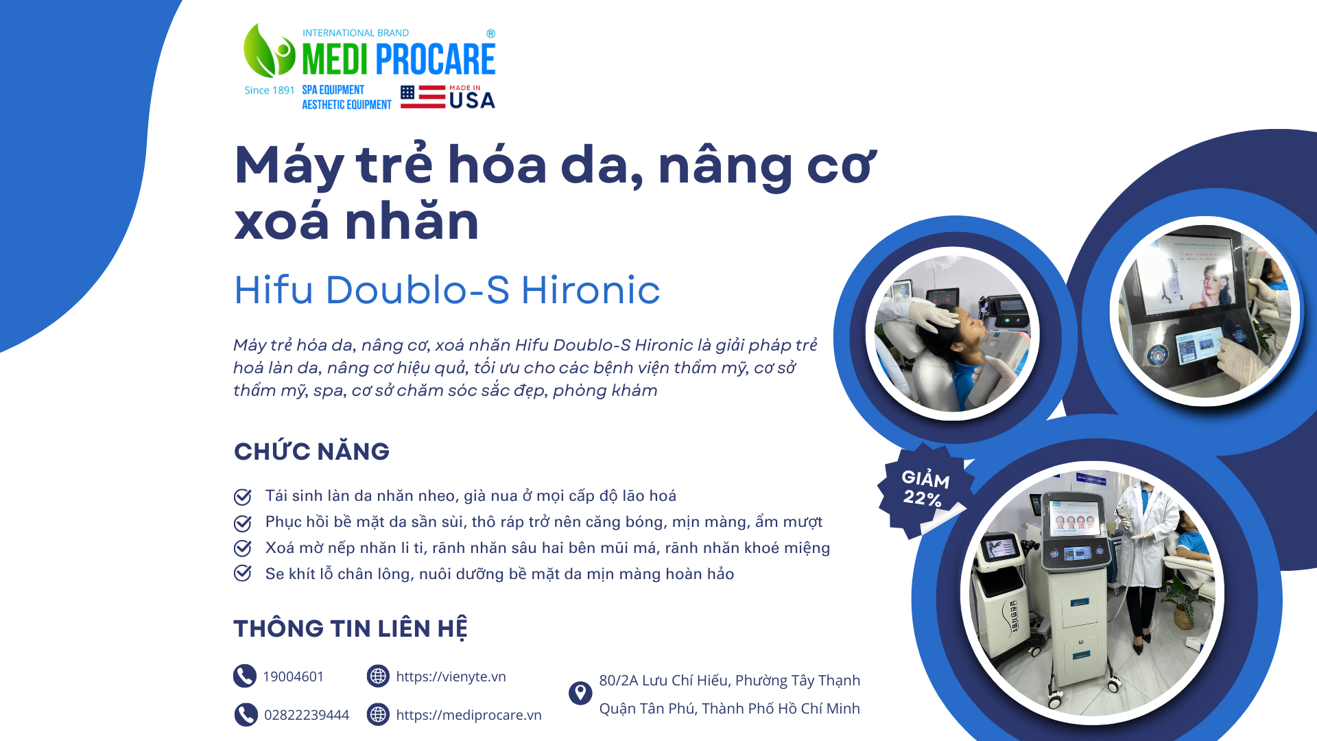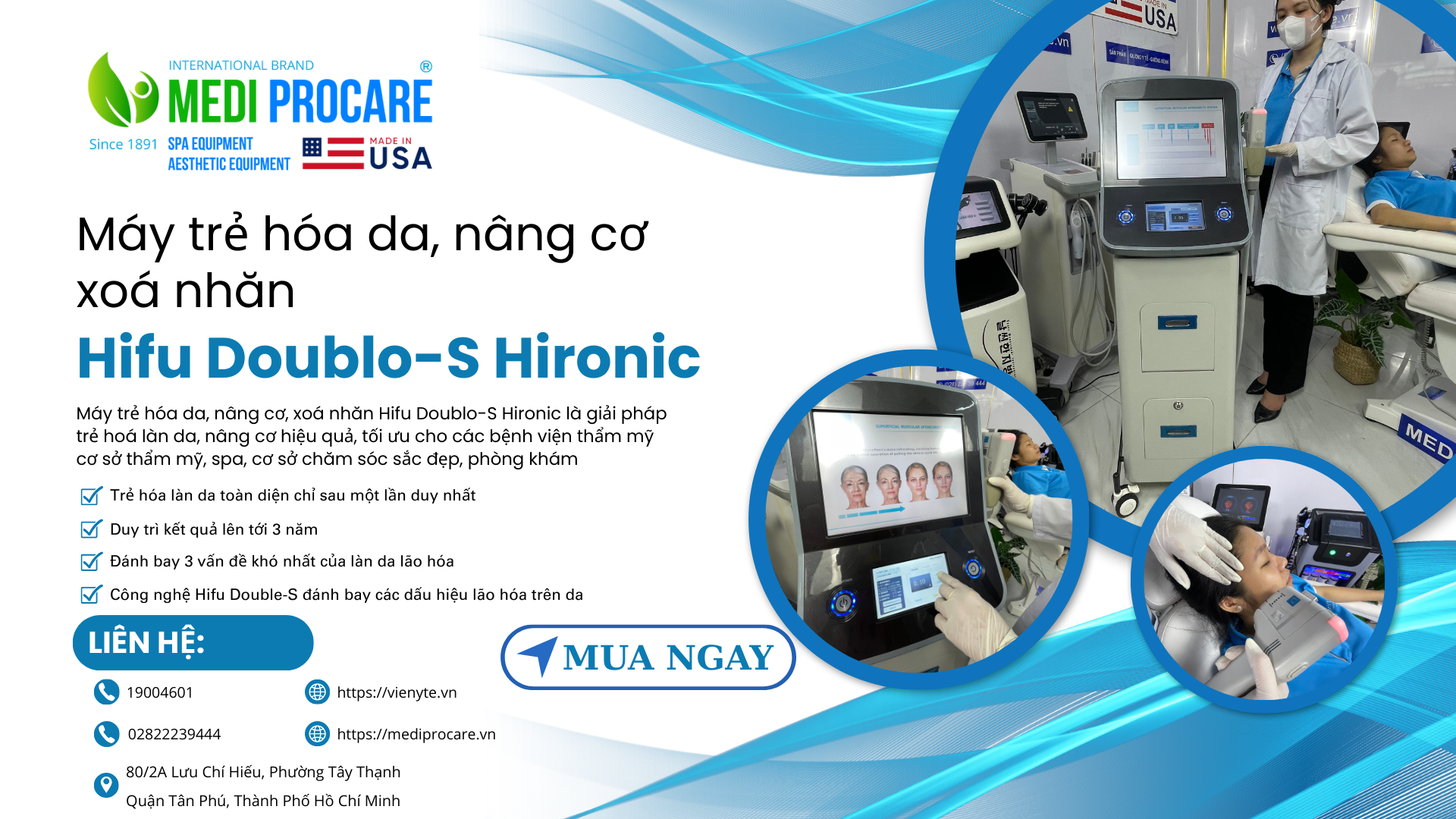 Về lịch sử: Thành lập từ năm 1891, hiện MEDI-PROCARE sở hữu hơn 118 chi nhánh toàn cầu, cung cấp giải pháp chăm sóc sắc đẹp đạt chuẩn y tế.