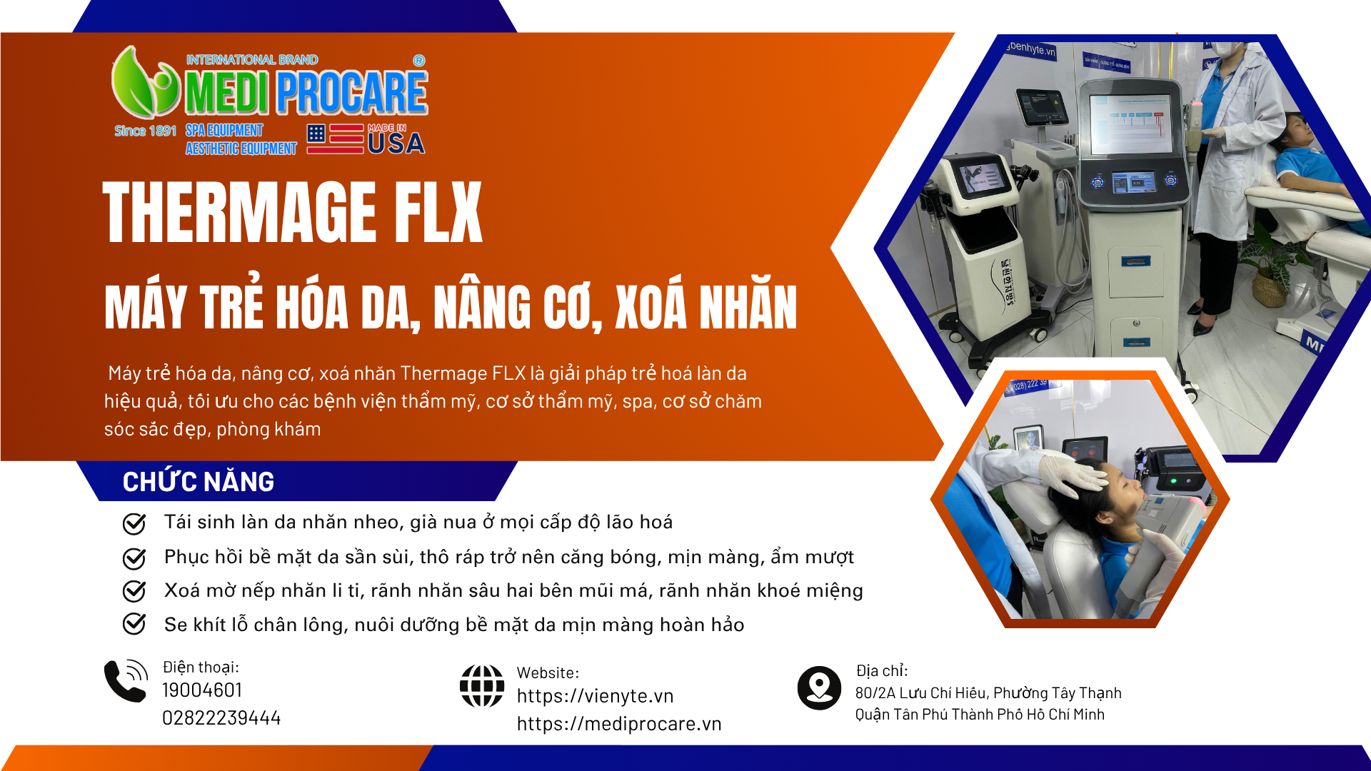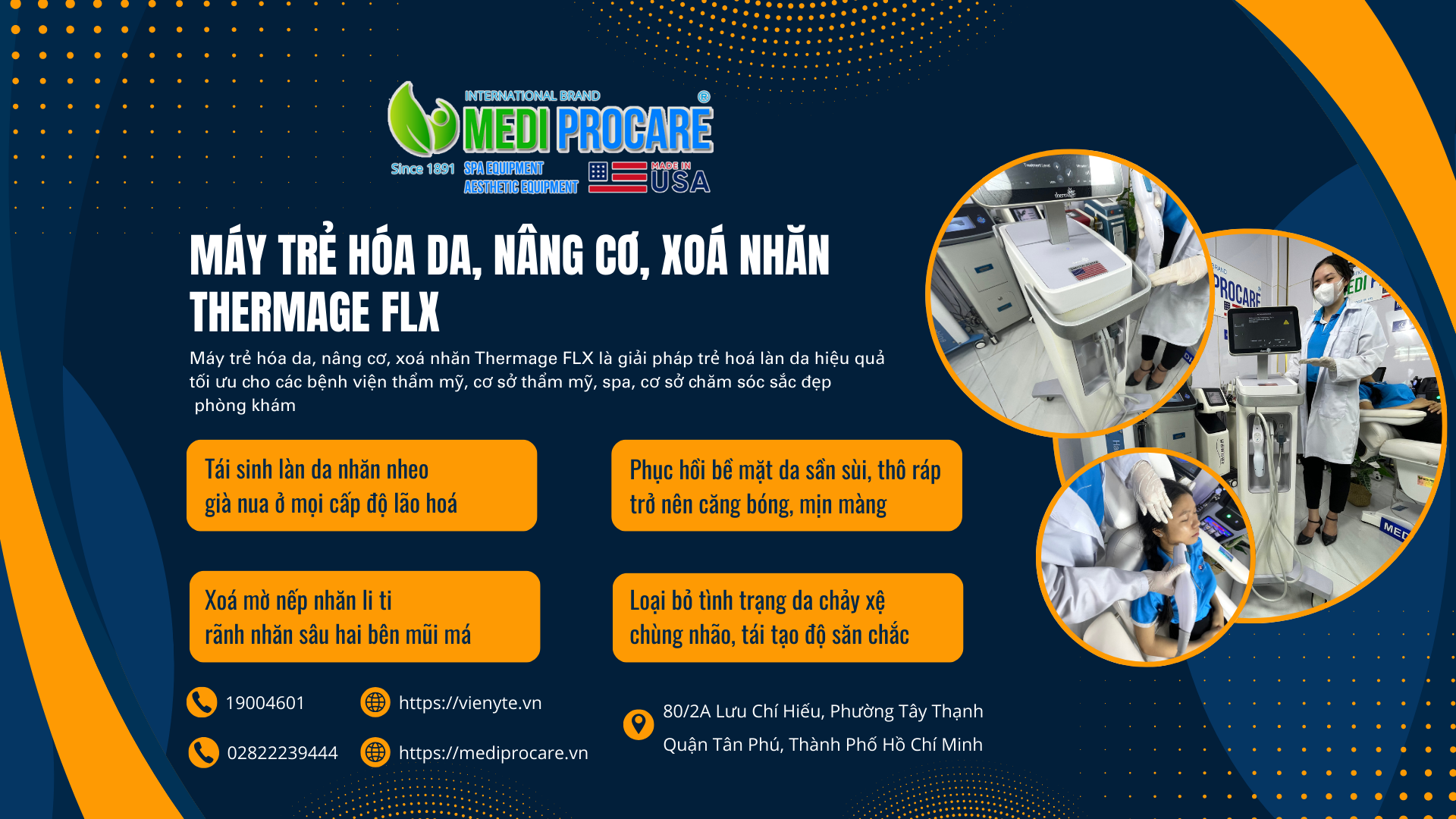 Thương hiệu SPA, THẨM MỸ MEDI-PROCARE mang đến giải pháp trẻ hóa làn da, nâng cơ, xoá nhăn và chăm sóc da toàn diện – một bước tiến vượt bậc trong lĩnh vực thẩm mỹ công nghệ cao đạt chuẩn y khoa quốc tế